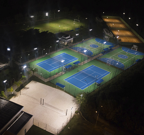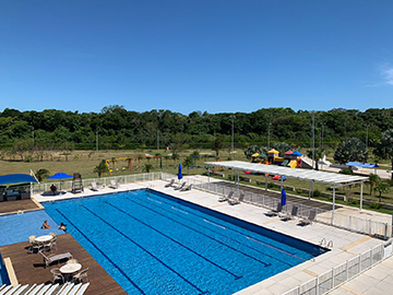 Uma breve descrição sobre o que têm no clube do Alphaville, quantas quadras e quantos tipos, tamanho da piscina, campo de futebol e etc…
