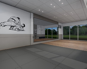 Espaço de Esportes para a prática de lutas, dança e outras atividades.