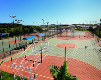 4 quadras de tênis, sendo 2 de saibro e 2 de concreto;