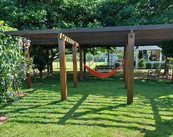 Um ambiente para relaxar, com muita tranquilidade e a sombra de árvores. As redes podem ser solicitadas à Supervisão do Clube.